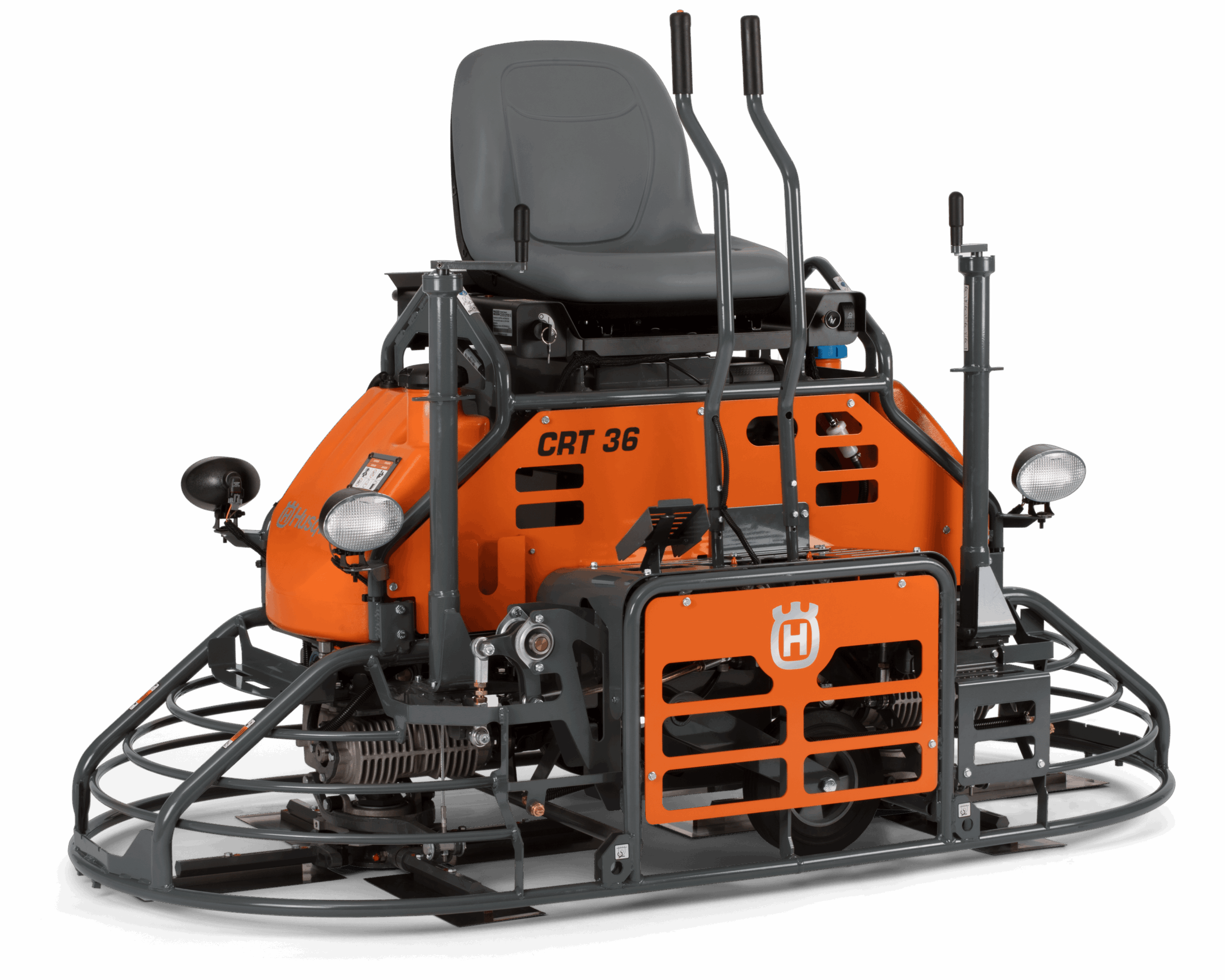 La fratasadora doble Husqvarna CRT 36 de 915 cm ofrece unos resultados de alta calidad, además de productividad y comodidad para el operario. Una sola persona puede subir y bajar fácilmente el kit de ruedas integrado con el gato situado en la parte trasera de la máquina, lo que mejora la maniobrabilidad en el lugar de trabajo. Durante su uso, el kit de ruedas no obstaculiza el campo de visión del operario. La CRT 36 es ideal para el acabado de superficies de 250 a 1000 m². Gracias al embrague CVT, la CRT 36 se puede usar a un régimen del motor bajo con discos para las primeras pasadas a fin de conseguir un alto nivel de planicidad del suelo. También se puede usar con hojas de acabado a un régimen del motor más alto para pulir el hormigón.